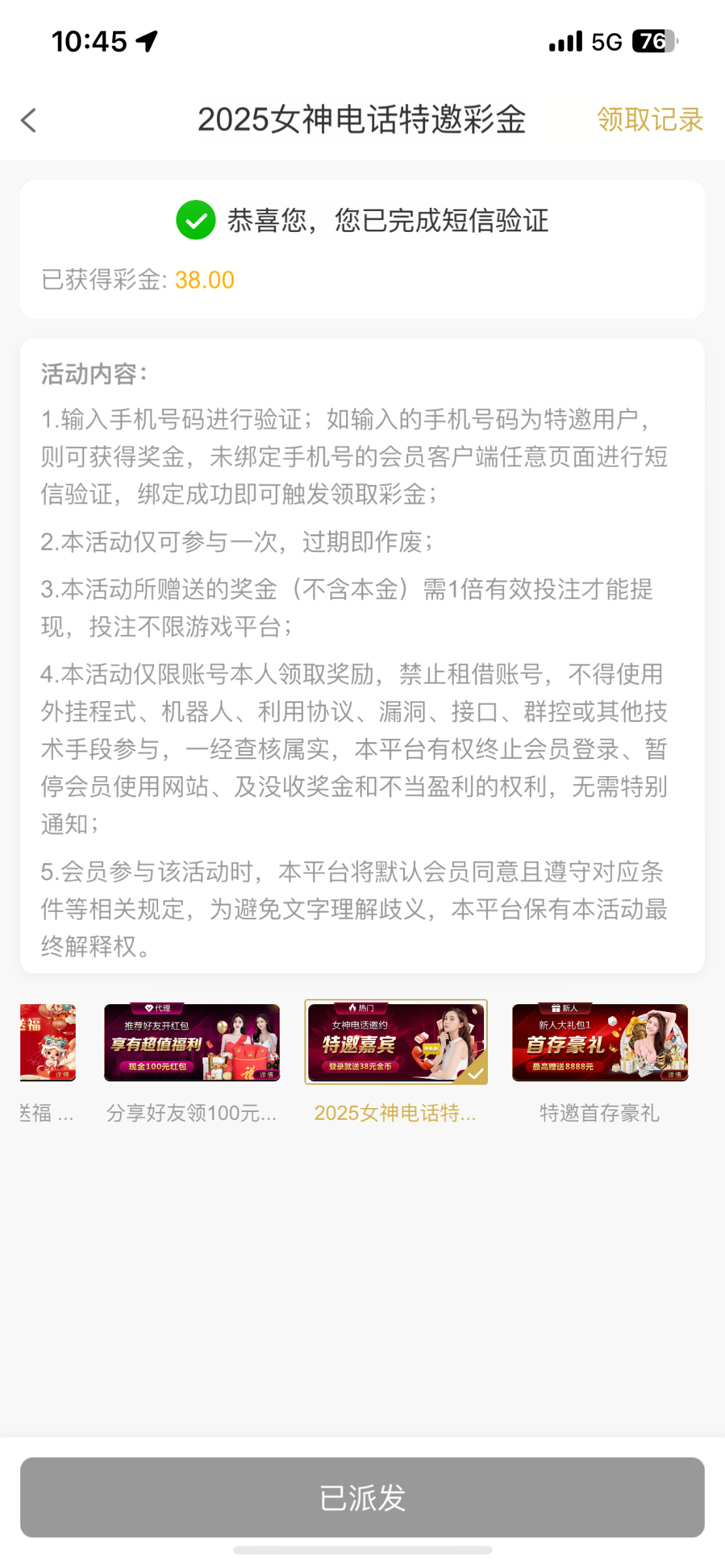 需要投注38才能领取