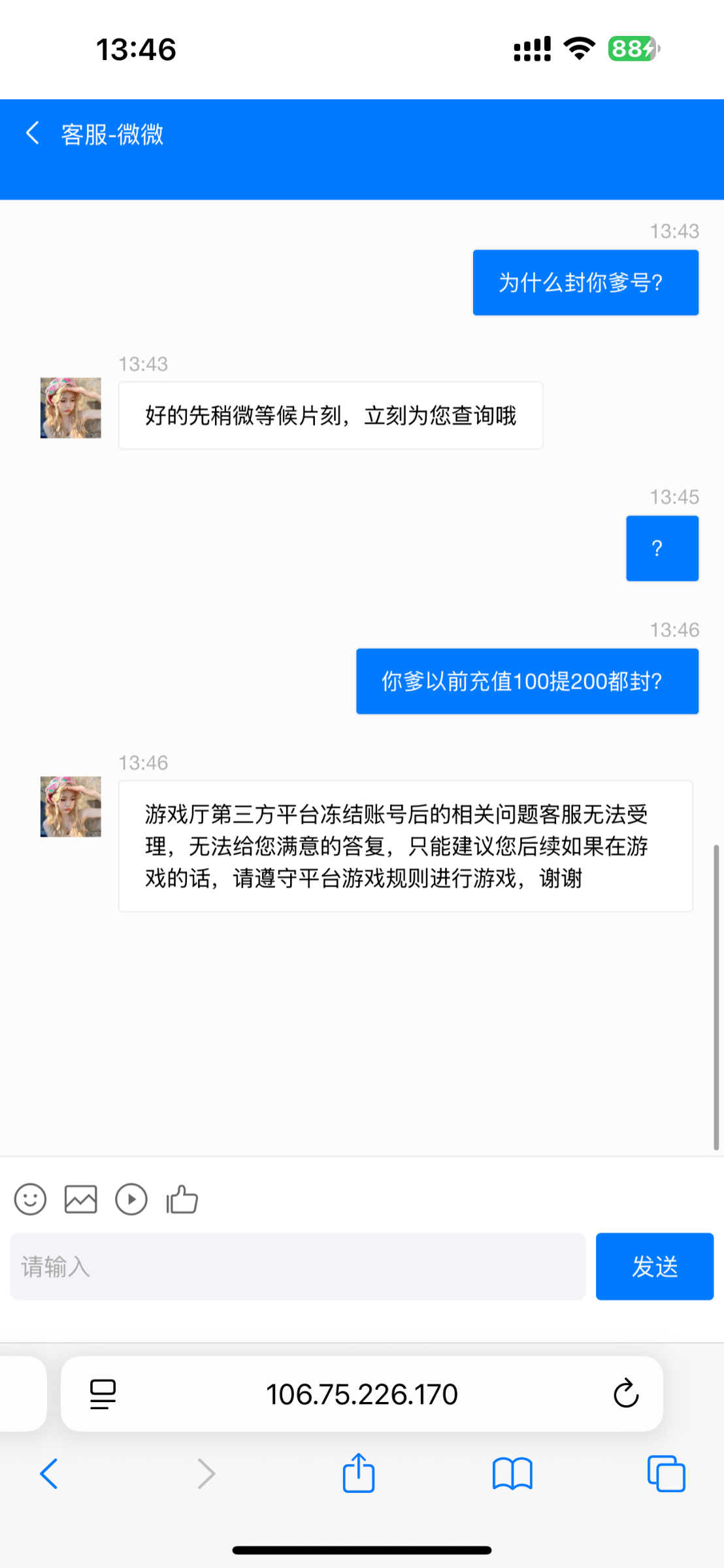这台前两年一直打电话充100送58,前两次充了都没赢,第三次充100送58提200直接封号