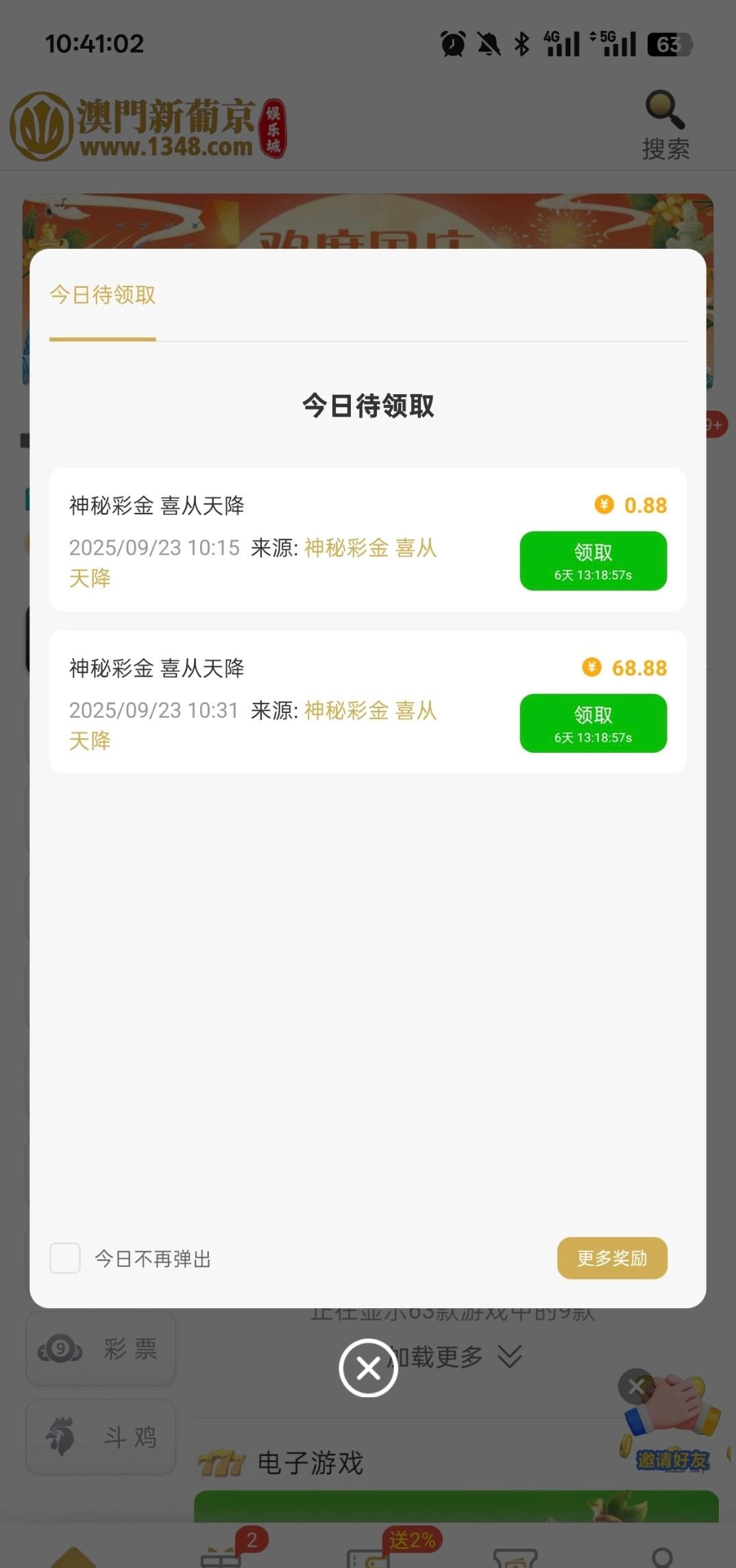 真羡慕68的我最多领了一次11冲过600多,基本上每天领0.88抢红包6块