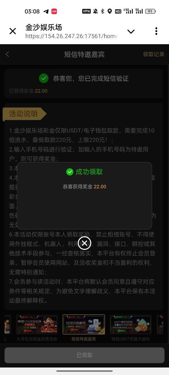 新用户注册绑定提款地址,优惠活动验证手机号自助申请,彩金限制活动图自行查看!不符合先注册等下次论坛发布再碰瓷!