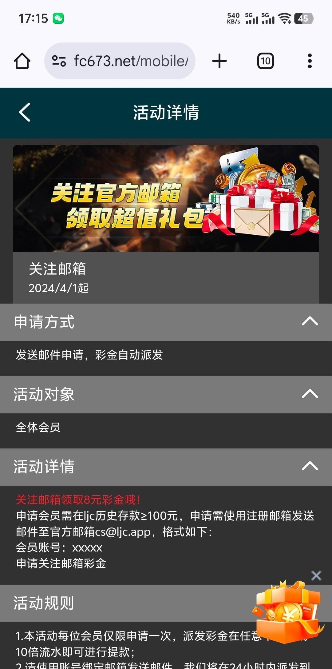 【乐金城】关注邮箱彩金