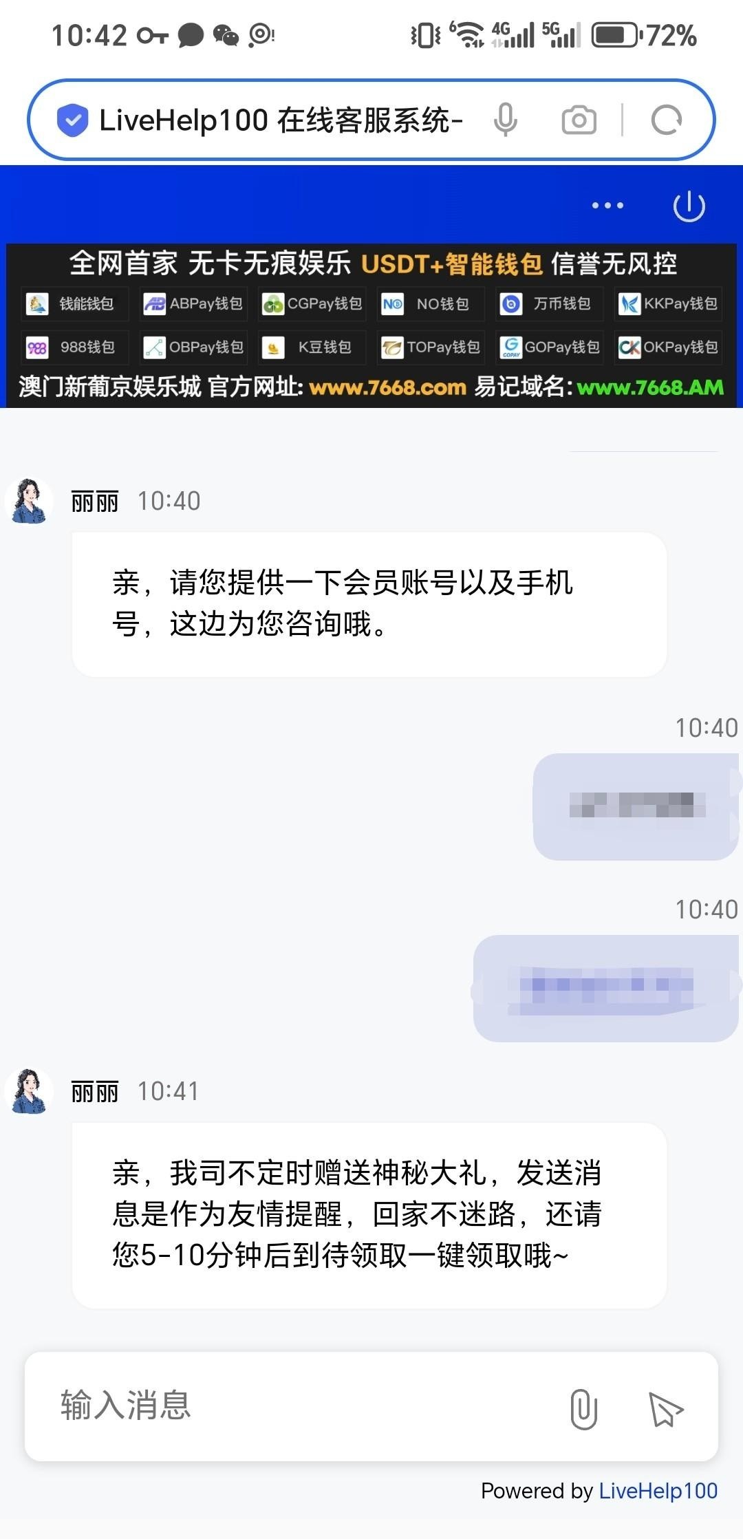 提供短信,手机号,账号给客服给的,不知道是不是充过的都能碰瓷,自己试试7668.com