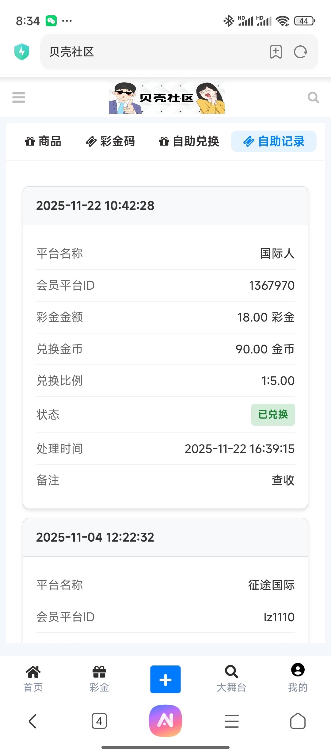 我兑换彩金没出过