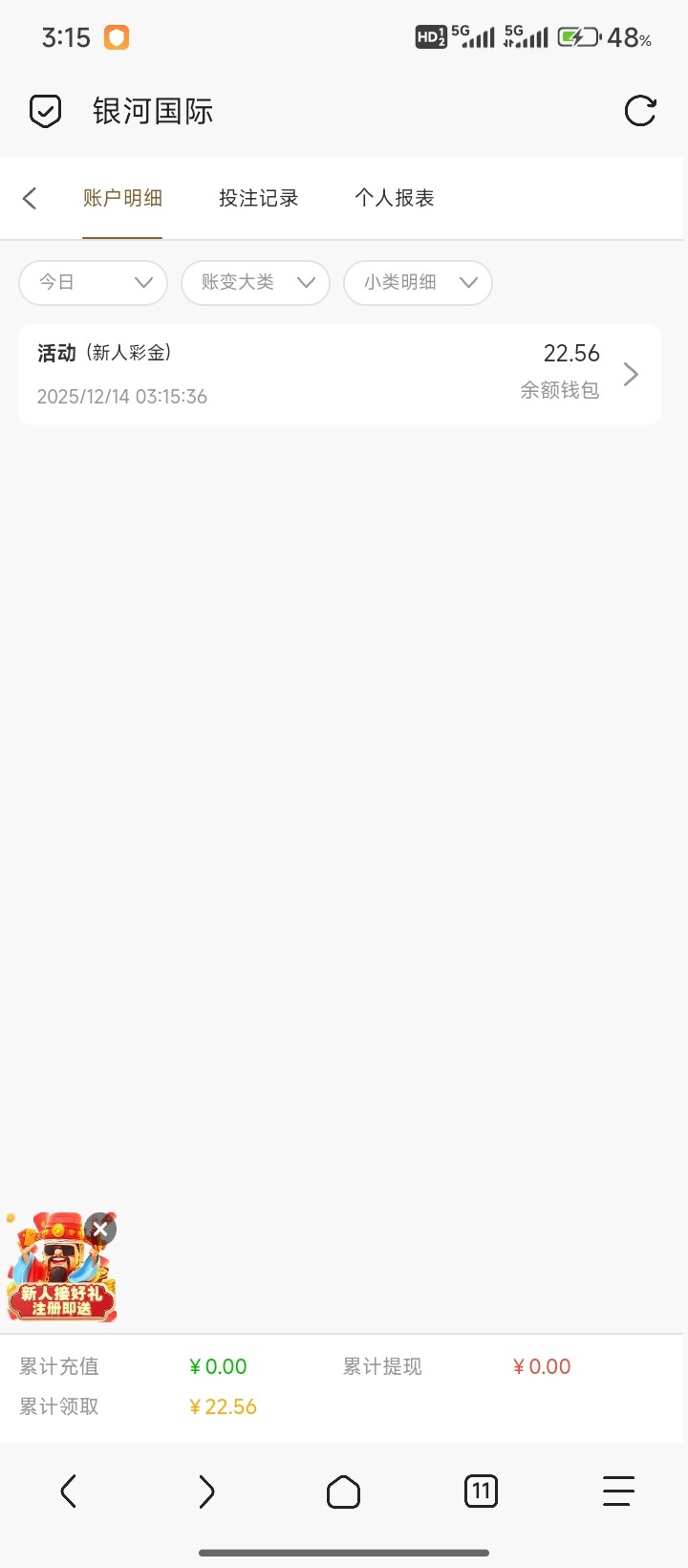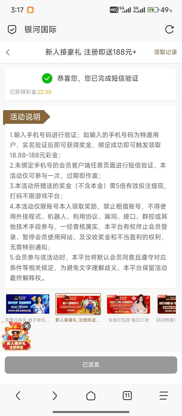 全是老号,倒是领了一个回归金