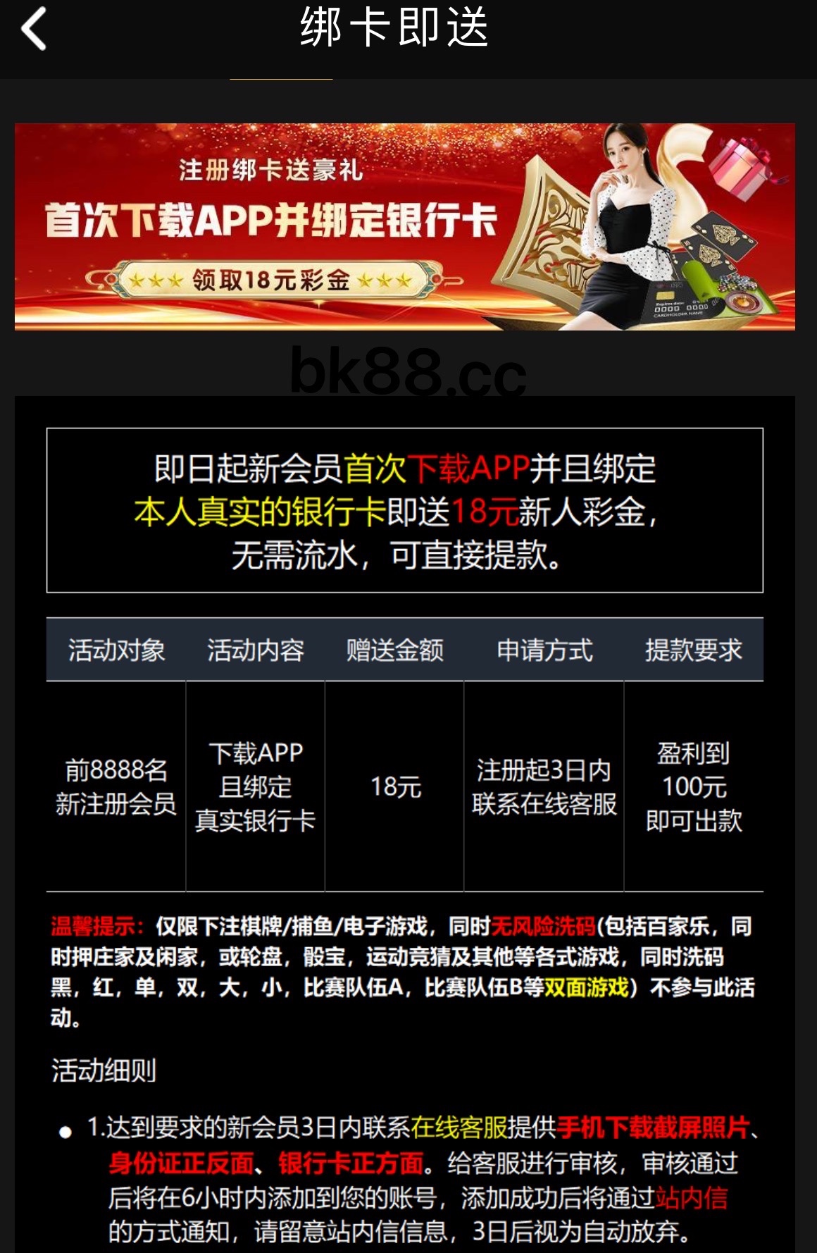 新用户注册完善个人信息需下载平台APP即可申请18彩金 每天8888个名额