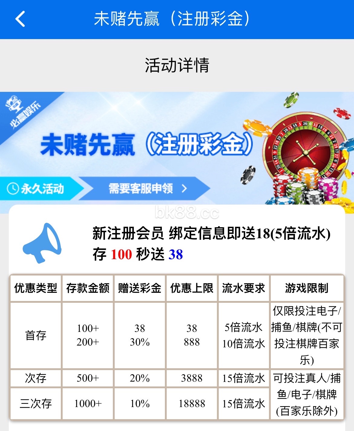 新用户注册绑定银行卡完善个人信息即可领取18平台彩金 五倍流水提现